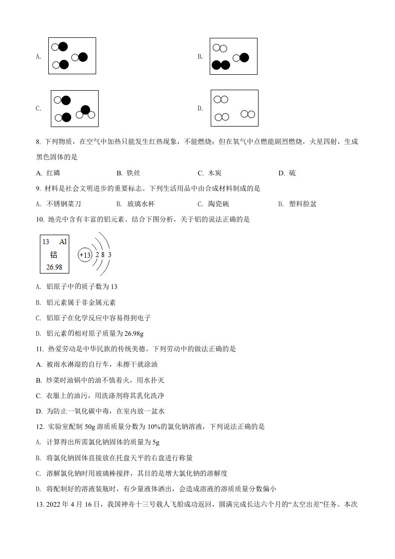 2022年湖南省邵阳市初中学业水平模拟考试化学试题(空白卷)_共8页