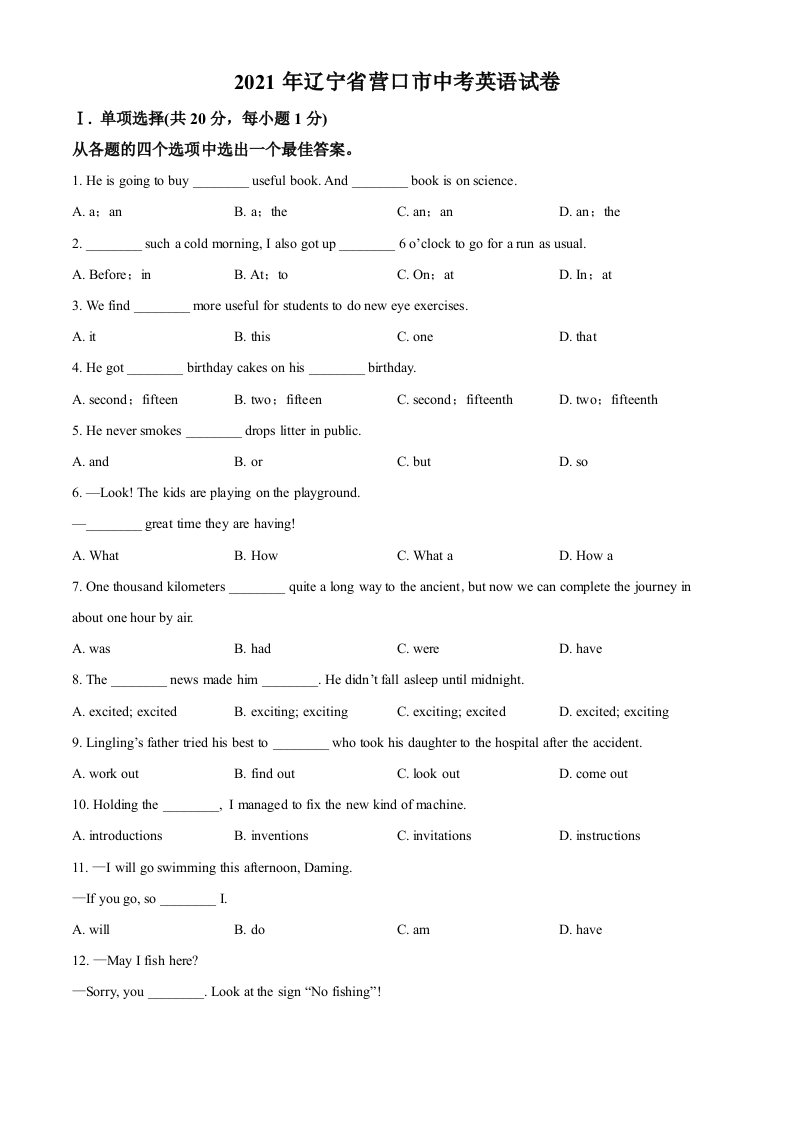 当前位置: 首页初中资源中考真题正文 辽宁省营口市2021年中考英语试题(空白卷)_共15页 中考真题 2 周前 0 0 10 以上为部分内容预览,如需源文档请登录您的会员账号进行下载! 声明:本站所有文章,如无特殊说明或标注,均为本站原创发布。任何个人或组织,在未征得本站同意时,禁止复制、盗用、采集、发布本站内容到任何网站、书籍等各类媒体平台。如若本站内容侵犯了原著者的合法权益,可联系我们进行处理。 尚学资源永久会员 打赏 收藏 海报 链接