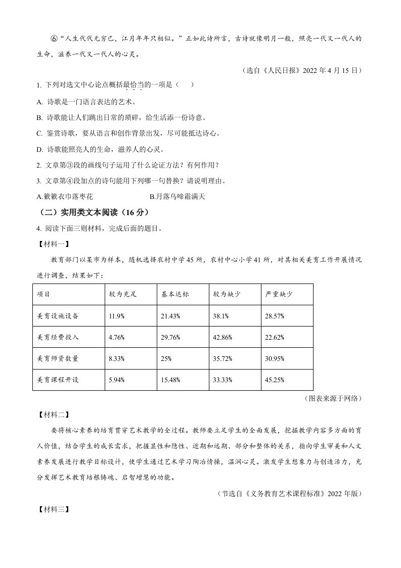 2022年湖南省湘潭市中考语文真题(空白卷)_共10页