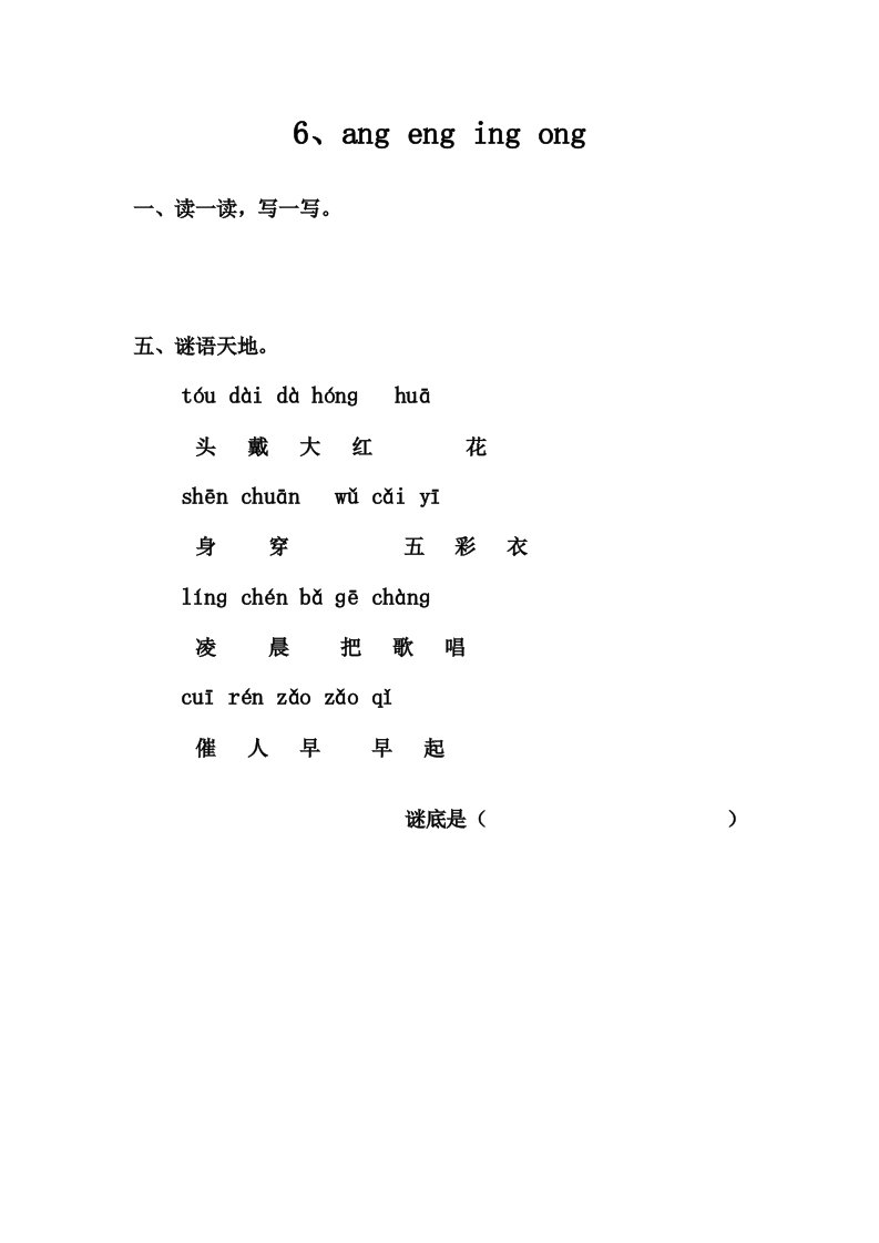 当前位置: 首页小学资源小学一年级正文 一年级语文上册6、angengingong(部编版)_共1页 小学一年级 2 周前 0 0 5 以上为部分内容预览,如需源文档请登录您的会员账号进行下载! 声明:本站所有文章,如无特殊说明或标注,均为本站原创发布。任何个人或组织,在未征得本站同意时,禁止复制、盗用、采集、发布本站内容到任何网站、书籍等各类媒体平台。如若本站内容侵犯了原著者的合法权益,可联系我们进行处理。 尚学资源永久会员 打赏 收藏 海报 链接