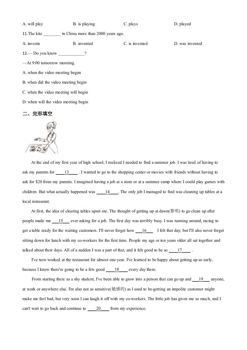 当前位置: 首页初中资源中考真题正文 北京2020年中考英语试题(空白卷)_共11页 中考真题 2 周前 0 0 10 以上为部分内容预览,如需源文档请登录您的会员账号进行下载! 声明:本站所有文章,如无特殊说明或标注,均为本站原创发布。任何个人或组织,在未征得本站同意时,禁止复制、盗用、采集、发布本站内容到任何网站、书籍等各类媒体平台。如若本站内容侵犯了原著者的合法权益,可联系我们进行处理。 尚学资源永久会员 打赏 收藏 海报 链接