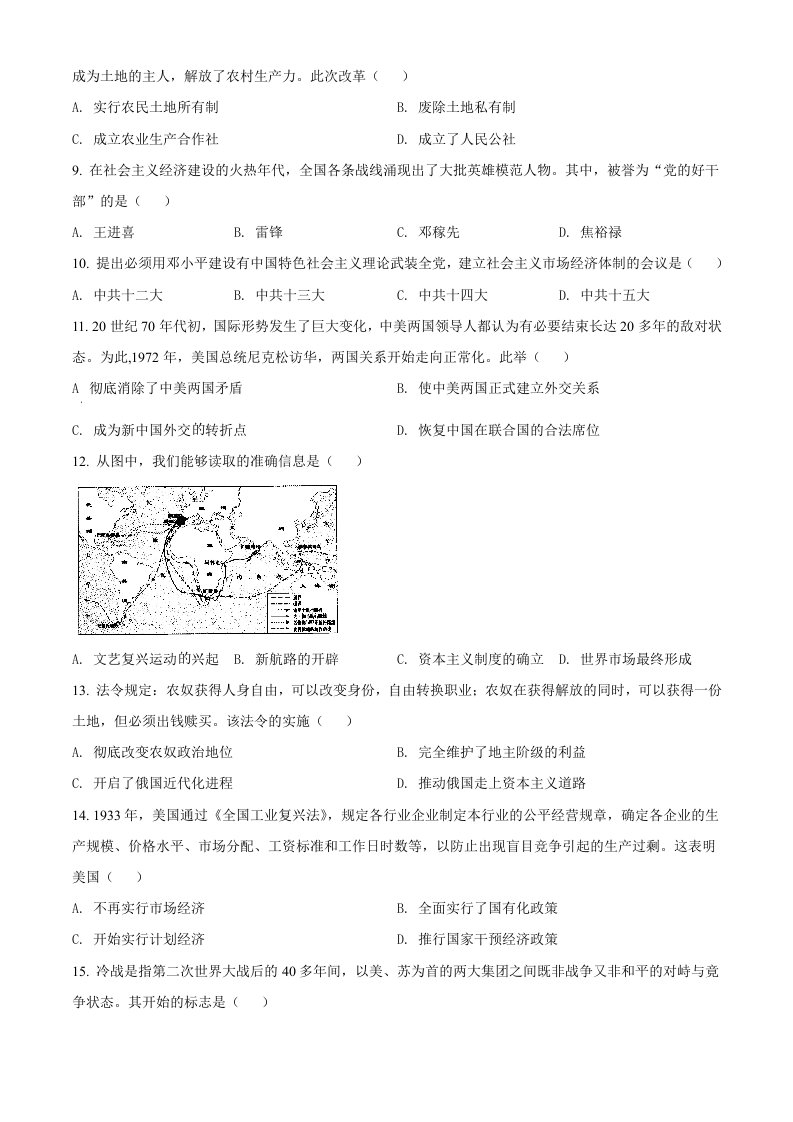 2022年广西百色市中考历史真题(空白卷)_共5页