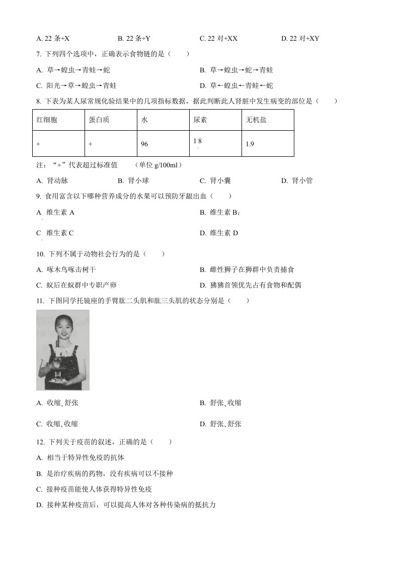 2022年吉林省大安市中考生物真题(空白卷)(1)_共8页