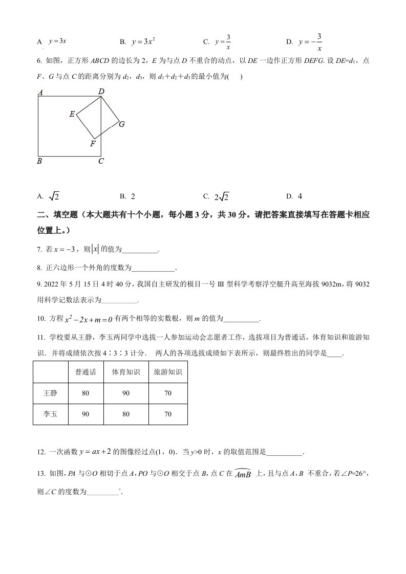 2022年江苏省泰州市中考数学真题(空白卷)_共8页