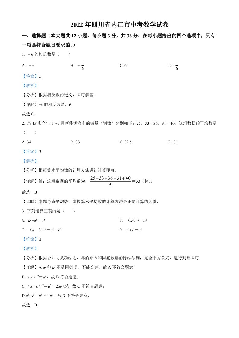 2022年四川省内江市中考数学真题(含答案)_共31页