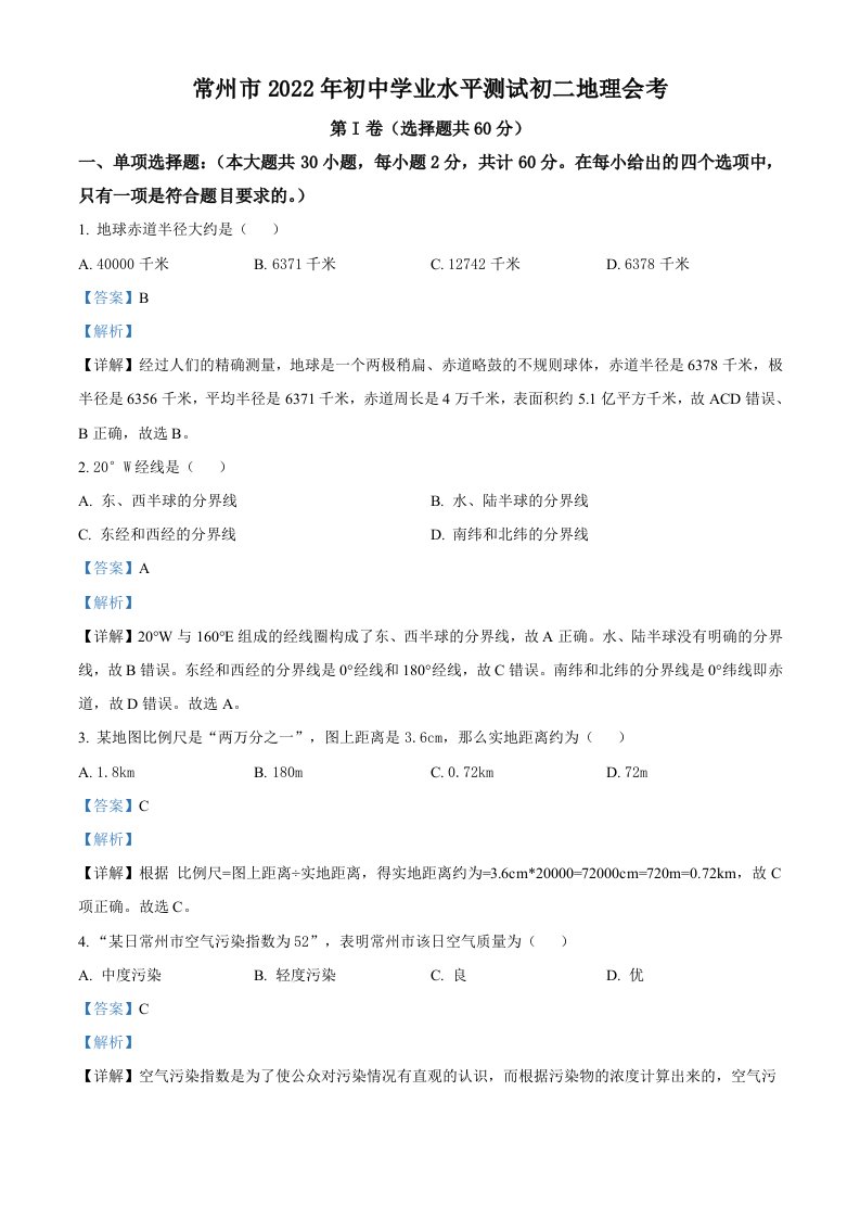 2022年江苏省常州市中考地理真题(含答案)_共16页