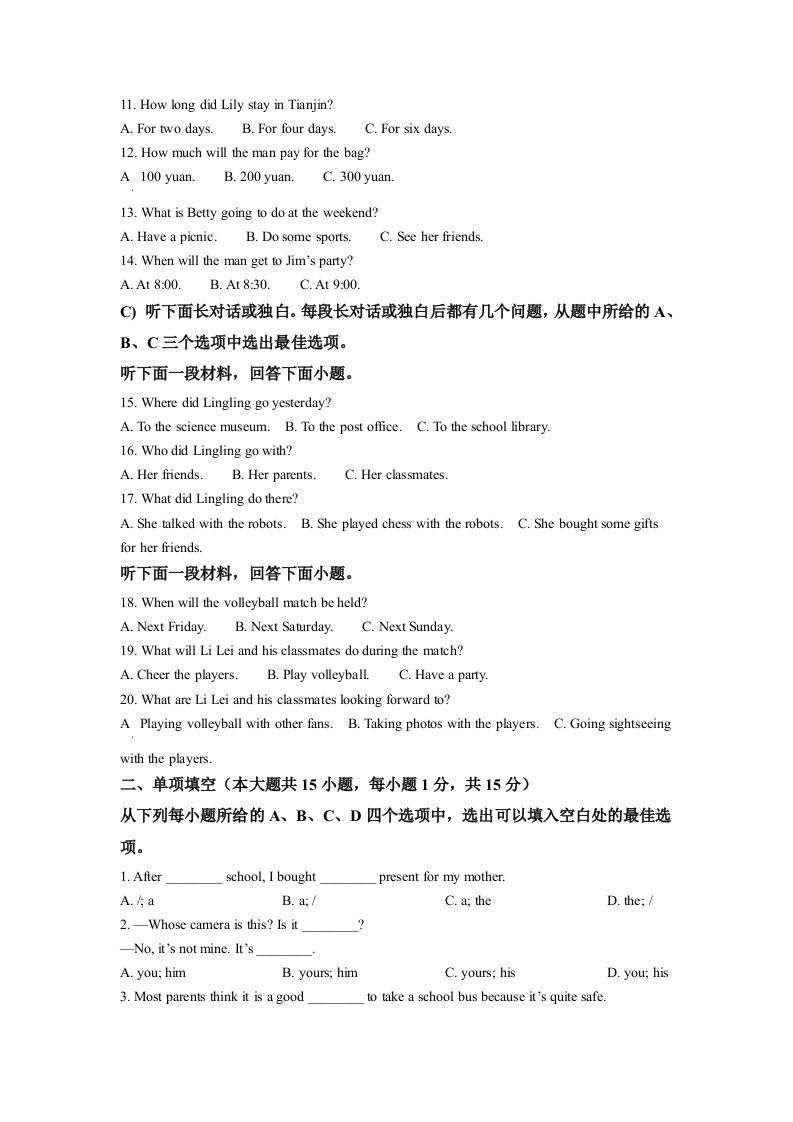 当前位置: 首页初中资源中考真题正文 2022年天津市中考英语真题(空白卷)_共9页 中考真题 2 周前 0 0 5 以上为部分内容预览,如需源文档请登录您的会员账号进行下载! 声明:本站所有文章,如无特殊说明或标注,均为本站原创发布。任何个人或组织,在未征得本站同意时,禁止复制、盗用、采集、发布本站内容到任何网站、书籍等各类媒体平台。如若本站内容侵犯了原著者的合法权益,可联系我们进行处理。 尚学资源永久会员 打赏 收藏 海报 链接