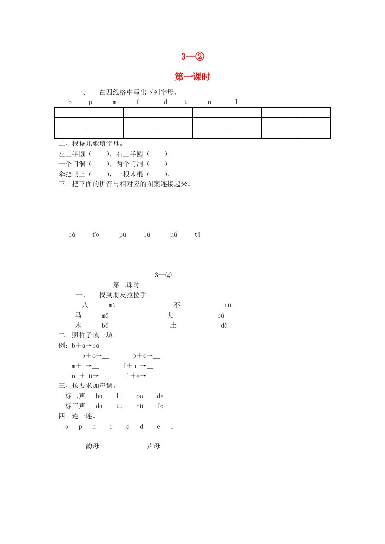 一年级语文上册3.bpmf练习2(部编版)_共1页
