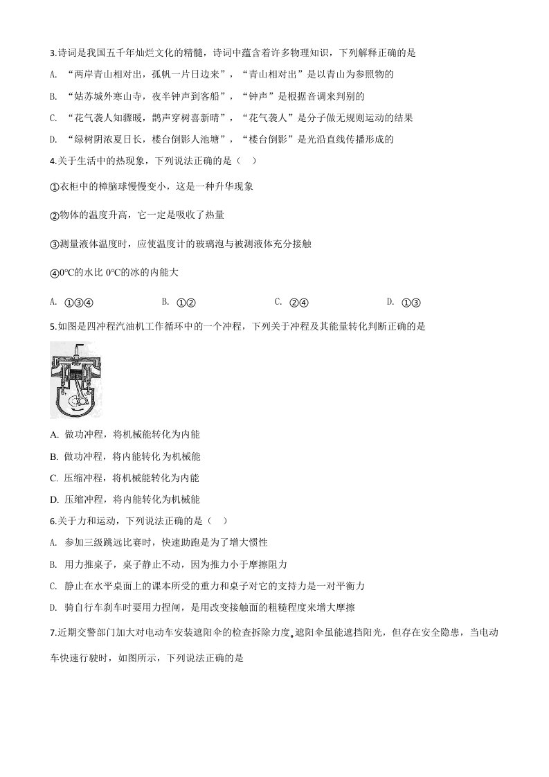 2020年山东省东营市中考物理试题(空白卷)_共9页