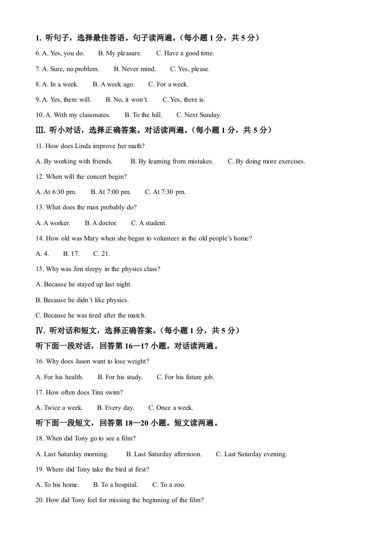 2022年湖北省黄石市中考英语真题(含答案)_共21页