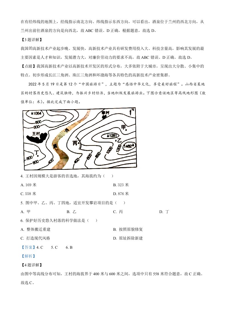 2022年山西省阳泉市中考地理真题(含答案)_共12页