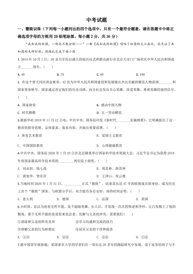 当前位置: 首页初中资源中考真题正文 湖南省湘潭市2020年中考道德与法治试题(空白卷)_共8页 中考真题 2 周前 0 0 5 以上为部分内容预览,如需源文档请登录您的会员账号进行下载! 声明:本站所有文章,如无特殊说明或标注,均为本站原创发布。任何个人或组织,在未征得本站同意时,禁止复制、盗用、采集、发布本站内容到任何网站、书籍等各类媒体平台。如若本站内容侵犯了原著者的合法权益,可联系我们进行处理。 尚学资源永久会员 打赏 收藏 海报 链接