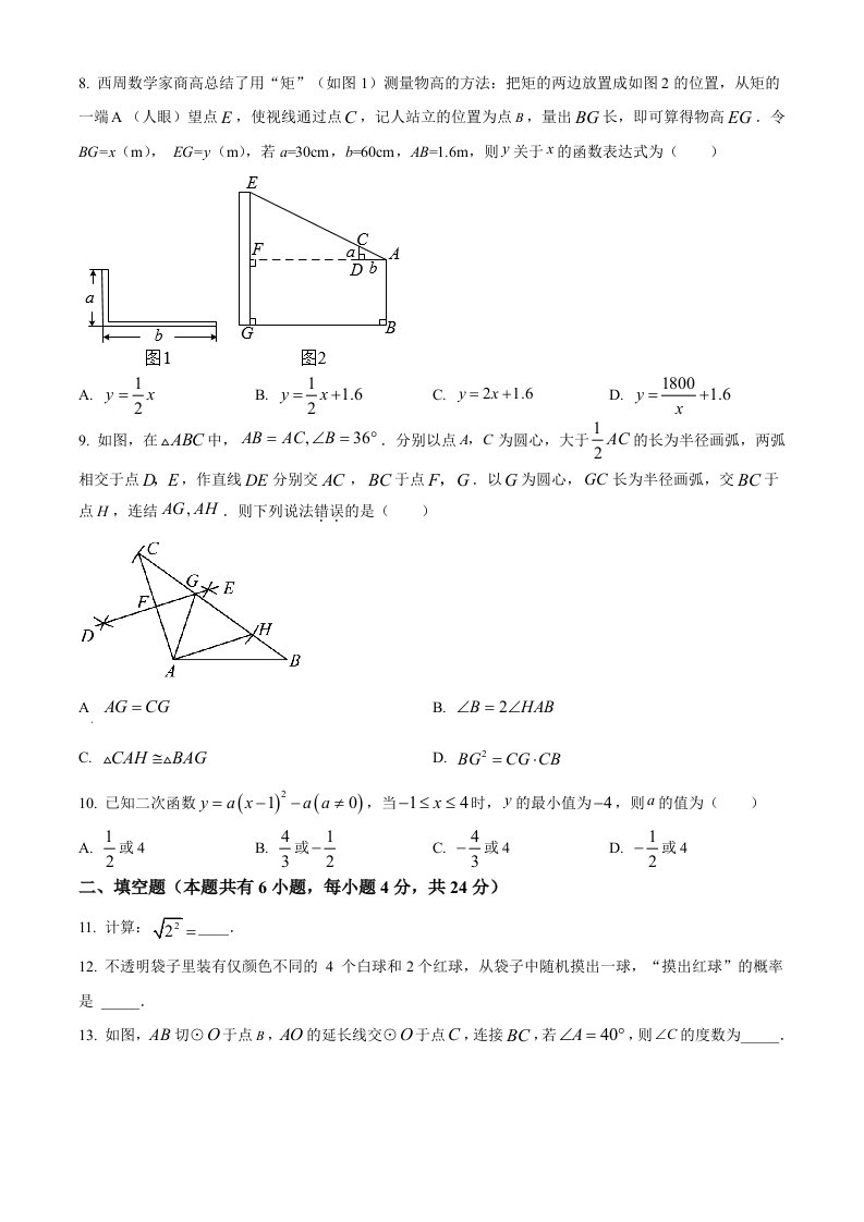 当前位置: 首页初中资源中考真题正文 2022年浙江省衢州市中考数学真题(空白卷)_共8页 中考真题 2 周前 0 0 5 以上为部分内容预览,如需源文档请登录您的会员账号进行下载! 声明:本站所有文章,如无特殊说明或标注,均为本站原创发布。任何个人或组织,在未征得本站同意时,禁止复制、盗用、采集、发布本站内容到任何网站、书籍等各类媒体平台。如若本站内容侵犯了原著者的合法权益,可联系我们进行处理。 尚学资源永久会员 打赏 收藏 海报 链接