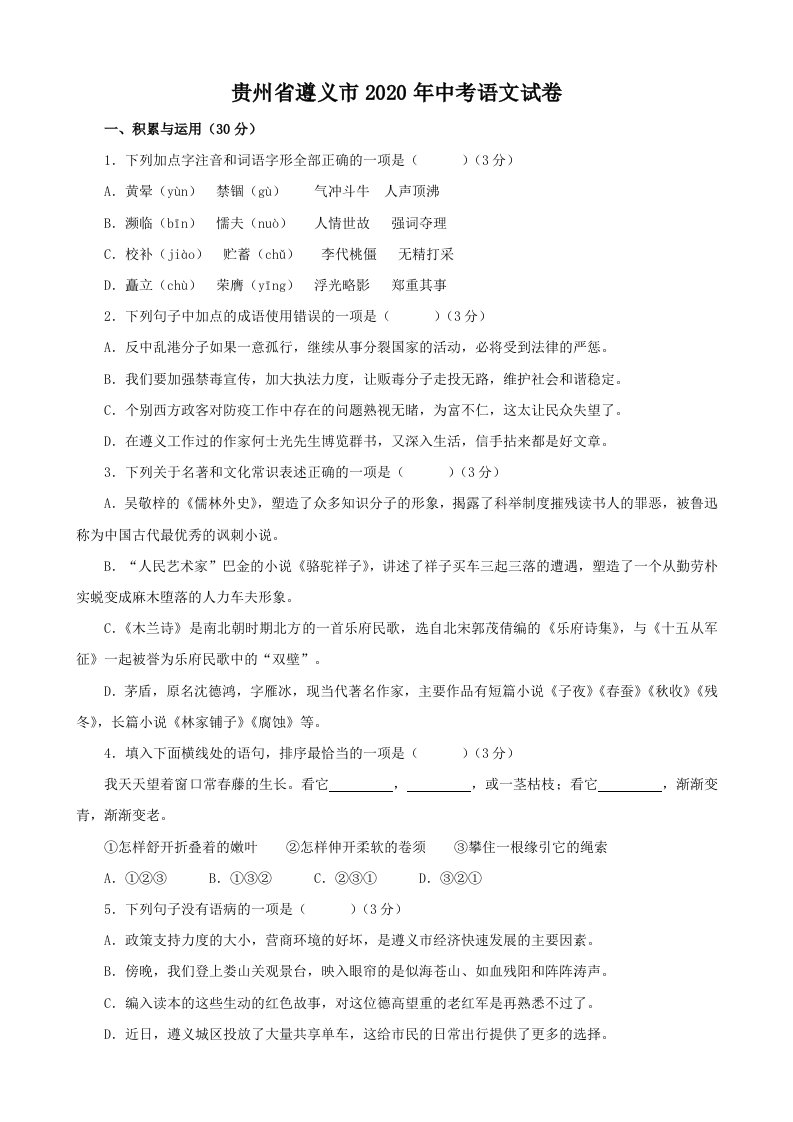 当前位置: 首页初中资源中考真题正文 贵州省遵义市2020年中考语文试题(含答案)_共27页 中考真题 2 周前 0 0 15 以上为部分内容预览,如需源文档请登录您的会员账号进行下载! 声明:本站所有文章,如无特殊说明或标注,均为本站原创发布。任何个人或组织,在未征得本站同意时,禁止复制、盗用、采集、发布本站内容到任何网站、书籍等各类媒体平台。如若本站内容侵犯了原著者的合法权益,可联系我们进行处理。 尚学资源永久会员 打赏 收藏 海报 链接