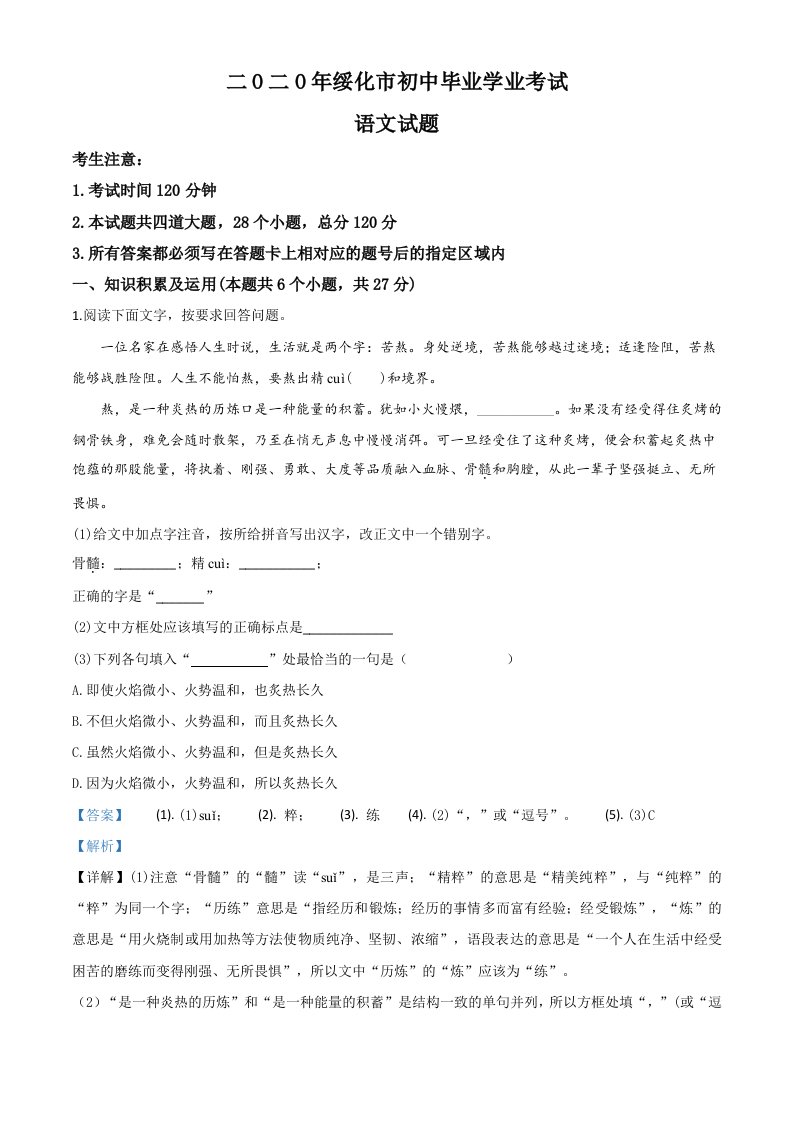 当前位置: 首页初中资源中考真题正文 黑龙江省绥化市2020年中考语文试题(含答案)_共20页 中考真题 2 周前 0 0 10 以上为部分内容预览,如需源文档请登录您的会员账号进行下载! 声明:本站所有文章,如无特殊说明或标注,均为本站原创发布。任何个人或组织,在未征得本站同意时,禁止复制、盗用、采集、发布本站内容到任何网站、书籍等各类媒体平台。如若本站内容侵犯了原著者的合法权益,可联系我们进行处理。 尚学资源永久会员 打赏 收藏 海报 链接