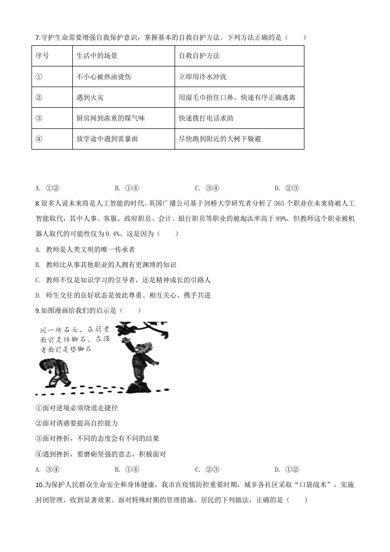 湖南省怀化市2020年中考道德与法治试题(空白卷)_共9页