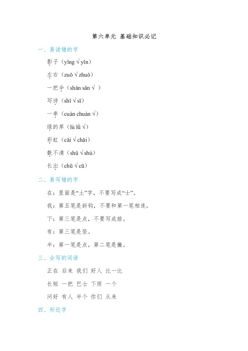当前位置: 首页小学资源小学一年级正文 一年级语文上册第6单元基础知识必记(部编版)_共3页 小学一年级 2 周前 0 0 5 以上为部分内容预览,如需源文档请登录您的会员账号进行下载! 声明:本站所有文章,如无特殊说明或标注,均为本站原创发布。任何个人或组织,在未征得本站同意时,禁止复制、盗用、采集、发布本站内容到任何网站、书籍等各类媒体平台。如若本站内容侵犯了原著者的合法权益,可联系我们进行处理。 尚学资源永久会员 打赏 收藏 海报 链接