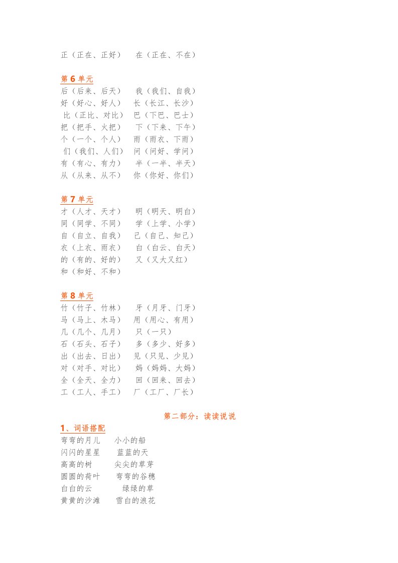 一年级语文上册部编本:统编期末复习知识点汇总(部编版)_共16页