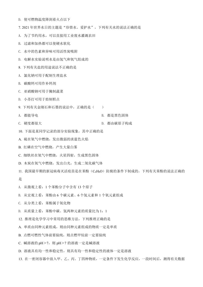 辽宁省鞍山市2021年中考化学试题(空白卷)_共10页
