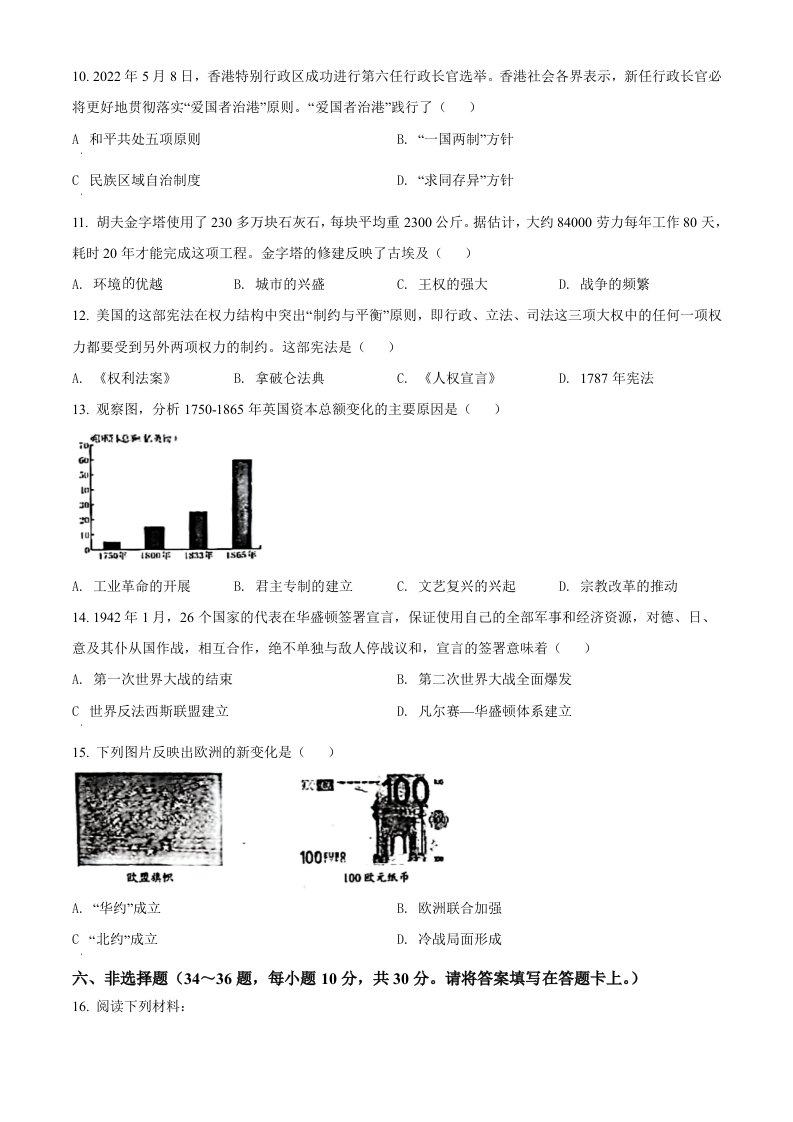 2022年广西桂林市中考历史真题(空白卷)_共5页