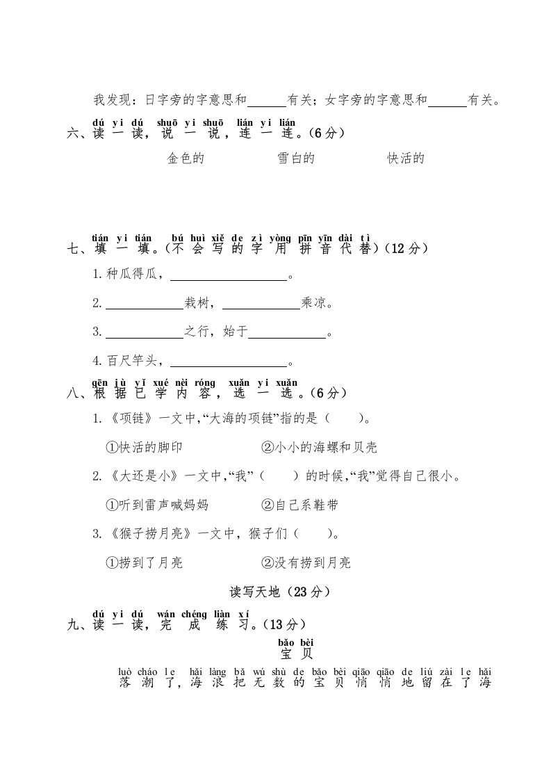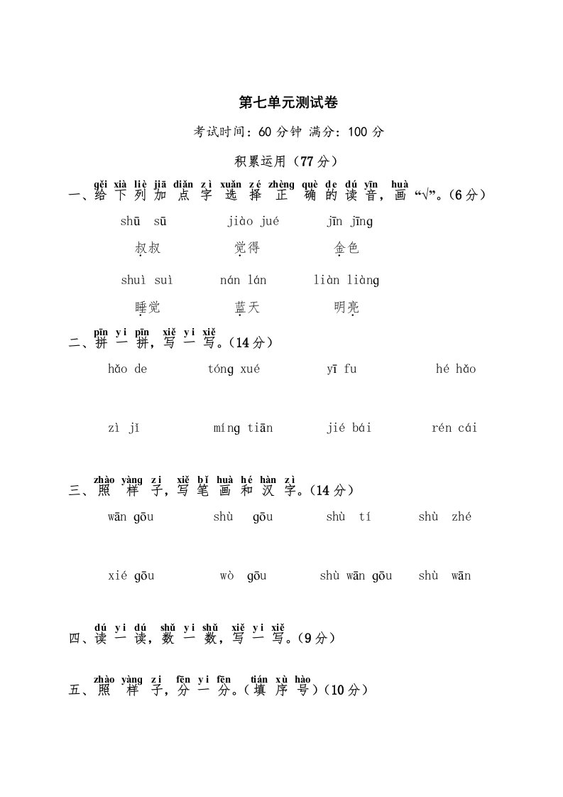 当前位置: 首页小学资源小学一年级正文 一年级语文上册第7单元测试卷1(部编版)_共4页 小学一年级 2 周前 0 0 5 以上为部分内容预览,如需源文档请登录您的会员账号进行下载! 声明:本站所有文章,如无特殊说明或标注,均为本站原创发布。任何个人或组织,在未征得本站同意时,禁止复制、盗用、采集、发布本站内容到任何网站、书籍等各类媒体平台。如若本站内容侵犯了原著者的合法权益,可联系我们进行处理。 尚学资源永久会员 打赏 收藏 海报 链接