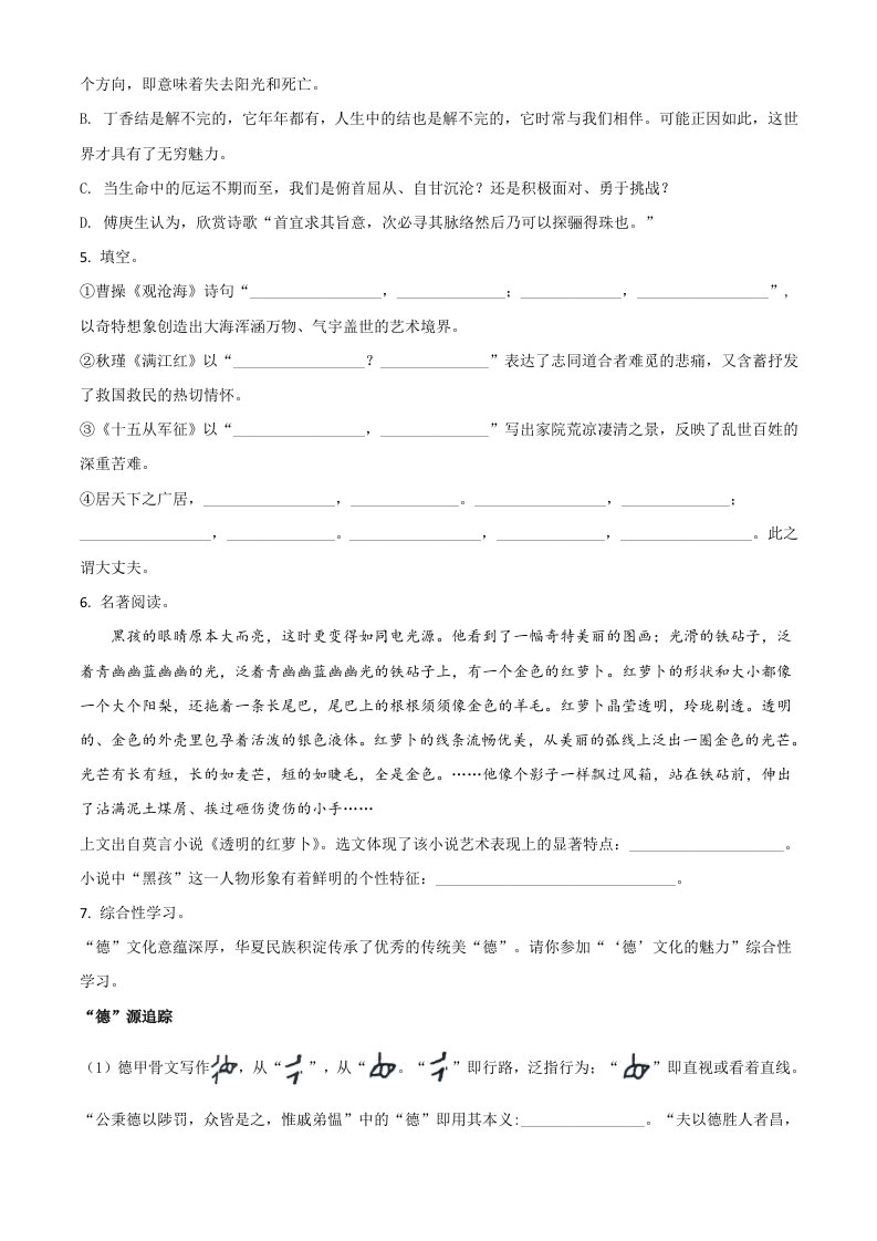 山东省东营市2020年中考语文试题(空白卷)_共9页