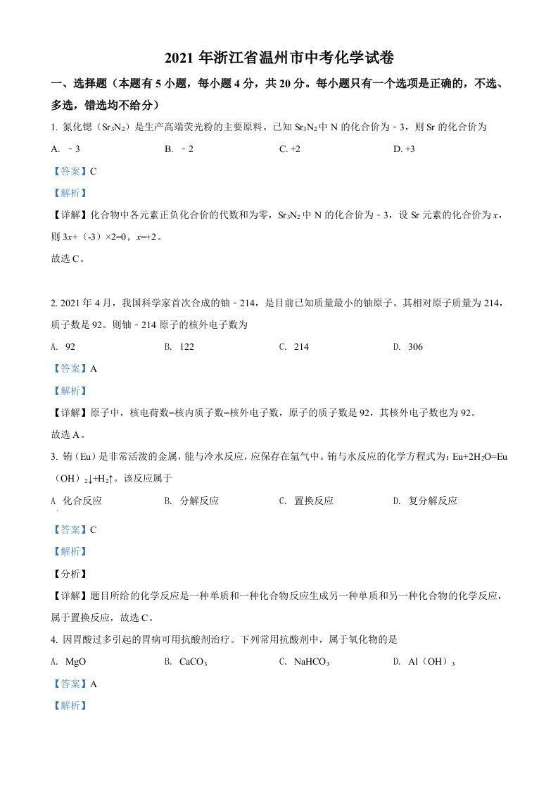 当前位置: 首页初中资源中考真题正文 浙江省温州市2021年中考化学试题(含答案)_共7页 中考真题 2 周前 0 0 5 以上为部分内容预览,如需源文档请登录您的会员账号进行下载! 声明:本站所有文章,如无特殊说明或标注,均为本站原创发布。任何个人或组织,在未征得本站同意时,禁止复制、盗用、采集、发布本站内容到任何网站、书籍等各类媒体平台。如若本站内容侵犯了原著者的合法权益,可联系我们进行处理。 尚学资源永久会员 打赏 收藏 海报 链接