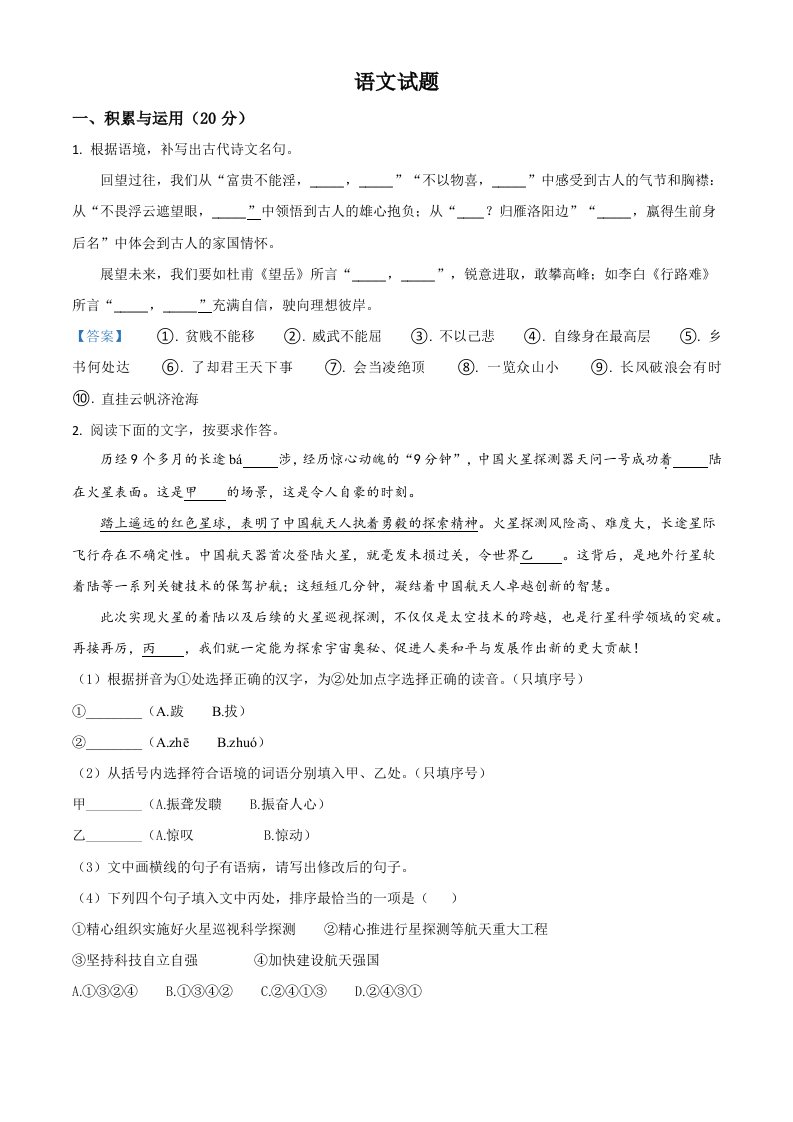 当前位置: 首页初中资源中考真题正文 2021年福建省中考语文试题_共11页 中考真题 2 周前 0 0 10 以上为部分内容预览,如需源文档请登录您的会员账号进行下载! 声明:本站所有文章,如无特殊说明或标注,均为本站原创发布。任何个人或组织,在未征得本站同意时,禁止复制、盗用、采集、发布本站内容到任何网站、书籍等各类媒体平台。如若本站内容侵犯了原著者的合法权益,可联系我们进行处理。 尚学资源永久会员 打赏 收藏 海报 链接