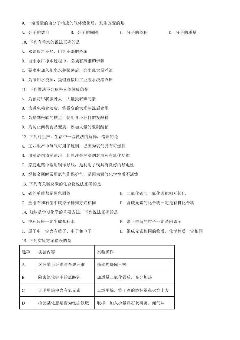 2022年辽宁省本溪市中考化学真题(空白卷)_共8页