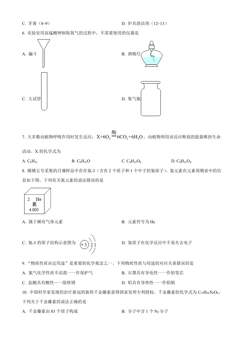 2022年四川省宜宾市中考化学真题(空白卷)_共10页