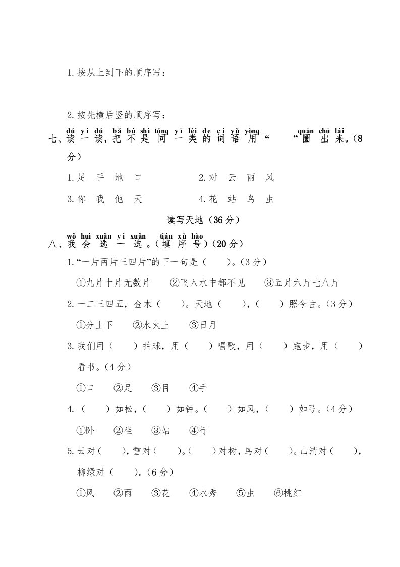 当前位置: 首页小学资源小学一年级正文 一年级语文上册第1单元测试卷1(部编版)_共4页 小学一年级 2 周前 0 0 5 以上为部分内容预览,如需源文档请登录您的会员账号进行下载! 声明:本站所有文章,如无特殊说明或标注,均为本站原创发布。任何个人或组织,在未征得本站同意时,禁止复制、盗用、采集、发布本站内容到任何网站、书籍等各类媒体平台。如若本站内容侵犯了原著者的合法权益,可联系我们进行处理。 尚学资源永久会员 打赏 收藏 海报 链接