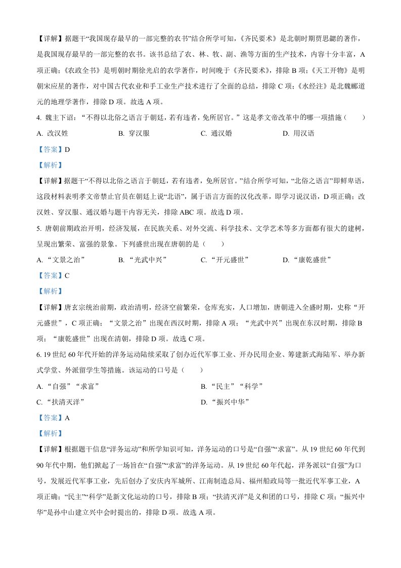 2023年湖南省怀化市中考历史真题(含答案)_共17页