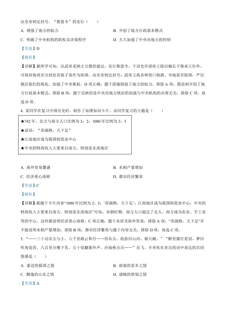 2023年湖南省张家界市中考历史真题(含答案)_共17页