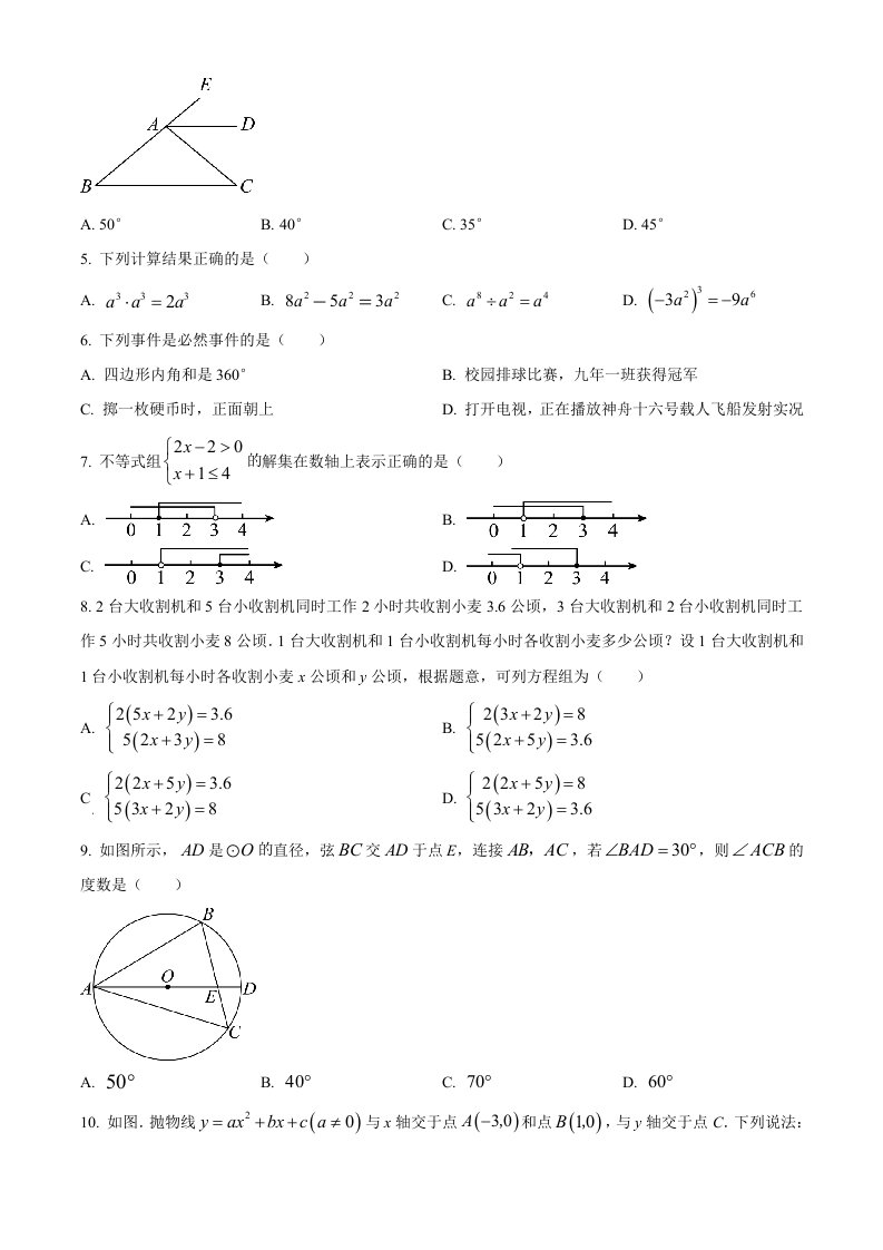 2023年辽宁省营口市中考数学真题(空白卷)_共8页