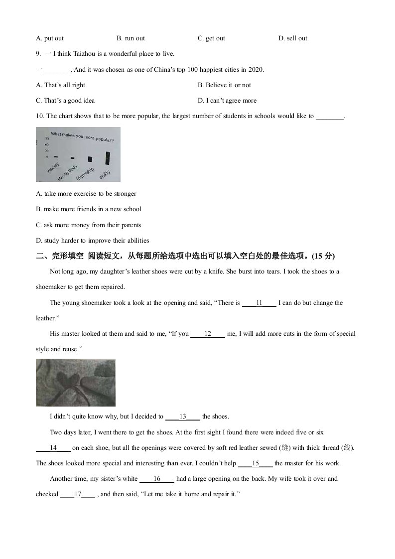 当前位置: 首页初中资源中考真题正文 江苏省泰州市2021年中考英语试题(空白卷)_共15页 中考真题 2 周前 0 0 10 以上为部分内容预览,如需源文档请登录您的会员账号进行下载! 声明:本站所有文章,如无特殊说明或标注,均为本站原创发布。任何个人或组织,在未征得本站同意时,禁止复制、盗用、采集、发布本站内容到任何网站、书籍等各类媒体平台。如若本站内容侵犯了原著者的合法权益,可联系我们进行处理。 尚学资源永久会员 打赏 收藏 海报 链接