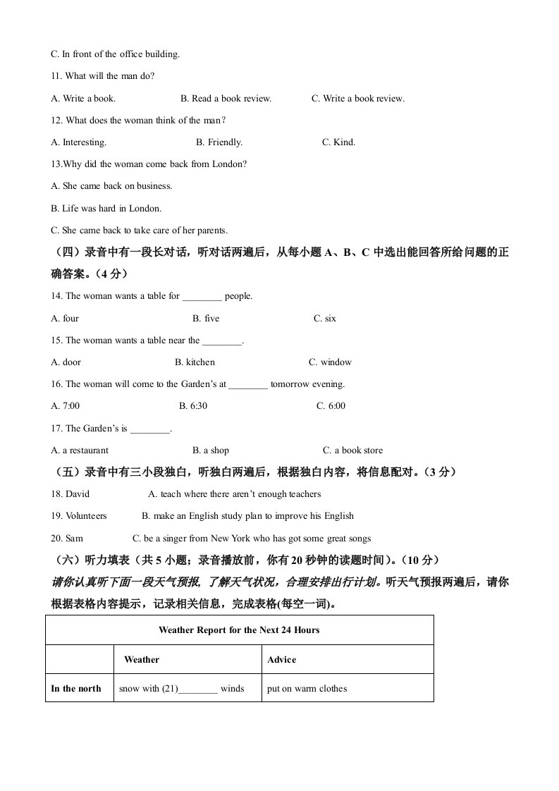 当前位置: 首页初中资源中考真题正文 山东省德州市2021年中考英语试题(含答案)_共20页 中考真题 2 周前 0 0 10 以上为部分内容预览,如需源文档请登录您的会员账号进行下载! 声明:本站所有文章,如无特殊说明或标注,均为本站原创发布。任何个人或组织,在未征得本站同意时,禁止复制、盗用、采集、发布本站内容到任何网站、书籍等各类媒体平台。如若本站内容侵犯了原著者的合法权益,可联系我们进行处理。 尚学资源永久会员 打赏 收藏 海报 链接