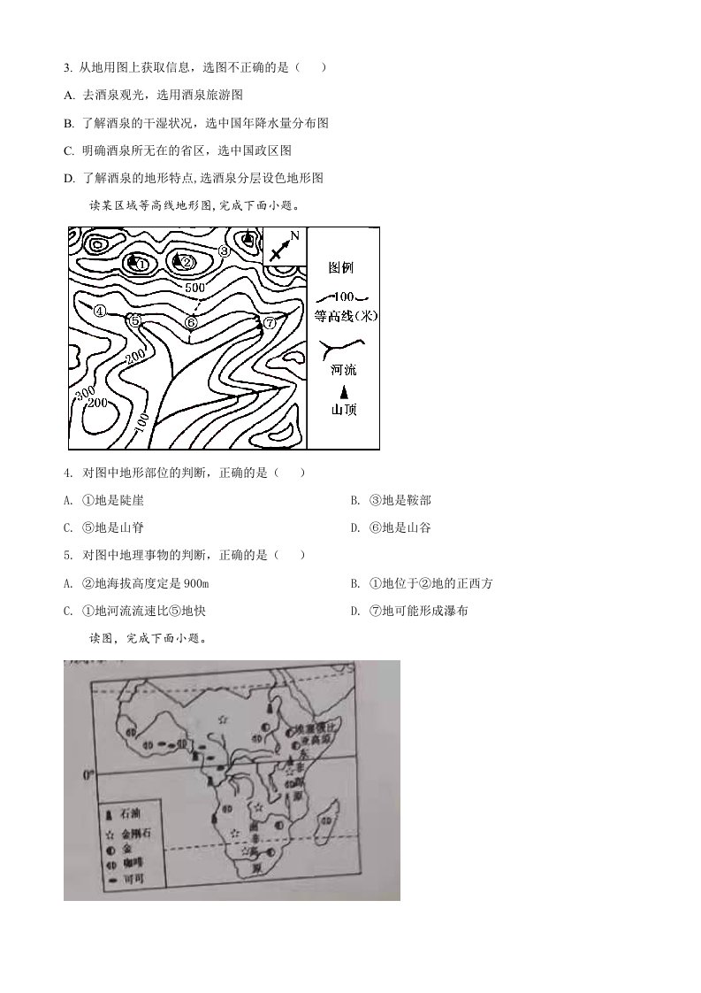 山东省济宁市2021年中考地理真题(空白卷)_共11页