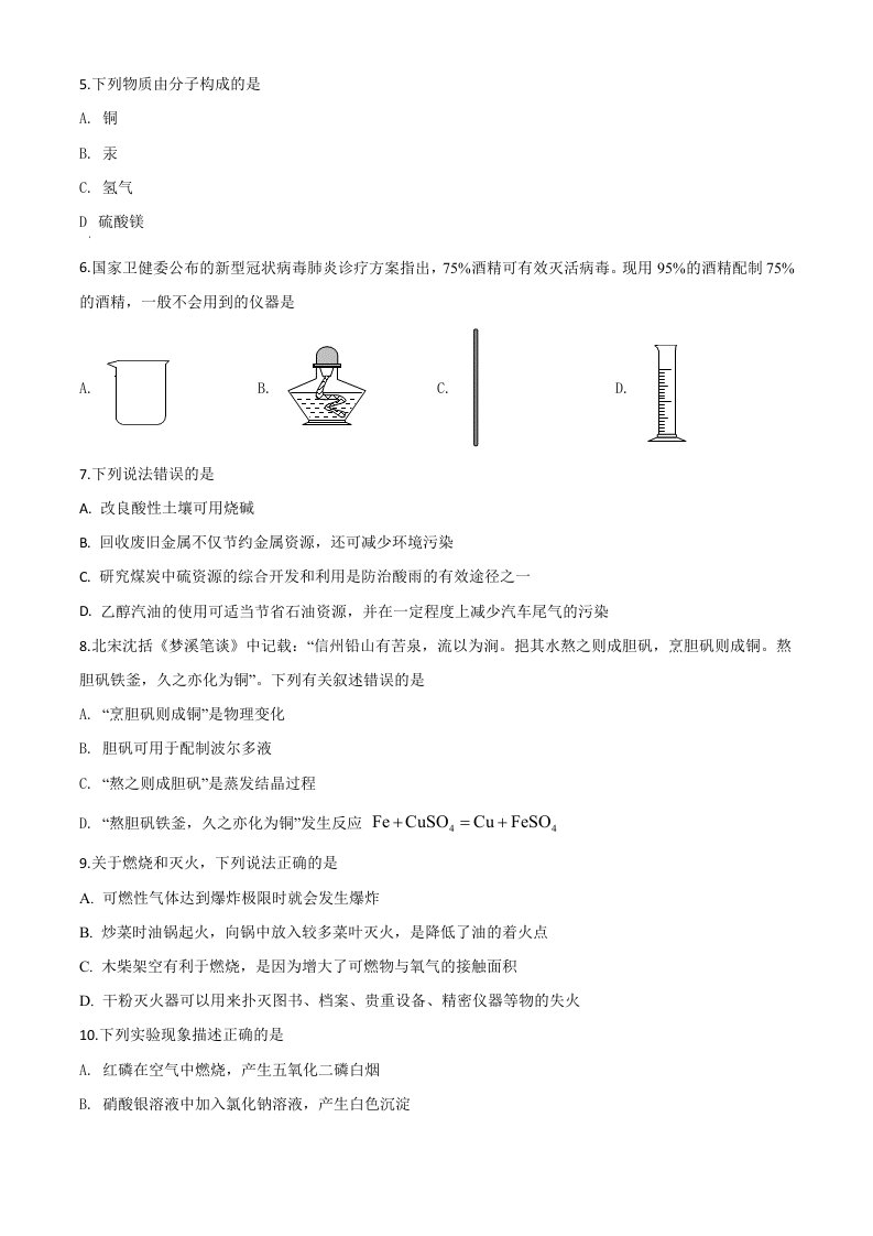 当前位置: 首页初中资源中考真题正文 云南省昆明市2020年中考化学试题(空白卷)_共12页 中考真题 2 周前 0 0 10 以上为部分内容预览,如需源文档请登录您的会员账号进行下载! 声明:本站所有文章,如无特殊说明或标注,均为本站原创发布。任何个人或组织,在未征得本站同意时,禁止复制、盗用、采集、发布本站内容到任何网站、书籍等各类媒体平台。如若本站内容侵犯了原著者的合法权益,可联系我们进行处理。 尚学资源永久会员 打赏 收藏 海报 链接