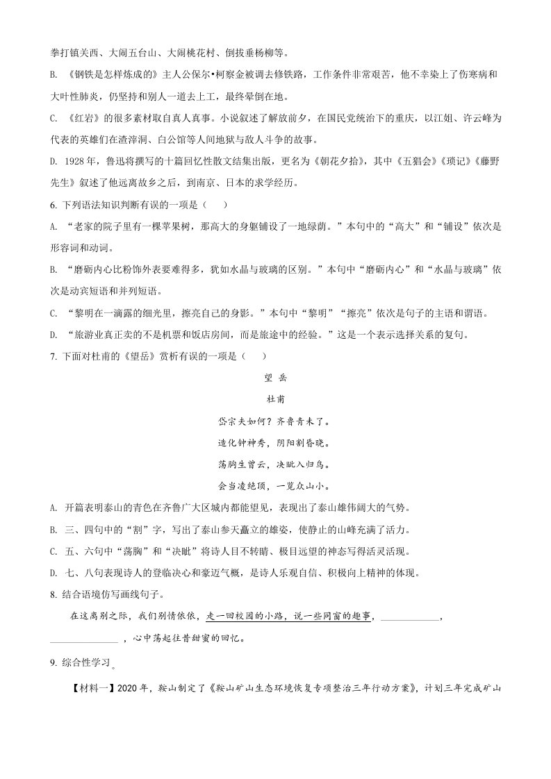 当前位置: 首页初中资源中考真题正文 辽宁省鞍山市2021年中考语文试题(空白卷)_共11页 中考真题 2 周前 0 0 10 以上为部分内容预览,如需源文档请登录您的会员账号进行下载! 声明:本站所有文章,如无特殊说明或标注,均为本站原创发布。任何个人或组织,在未征得本站同意时,禁止复制、盗用、采集、发布本站内容到任何网站、书籍等各类媒体平台。如若本站内容侵犯了原著者的合法权益,可联系我们进行处理。 尚学资源永久会员 打赏 收藏 海报 链接