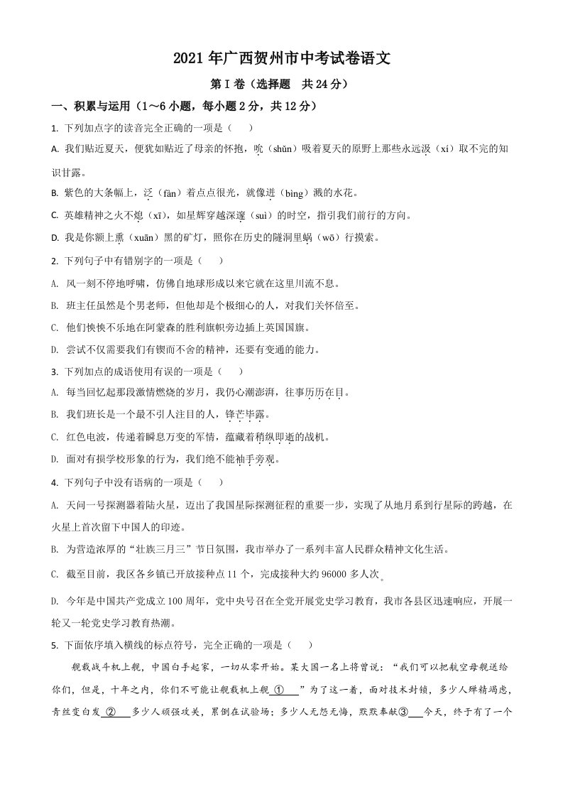 当前位置: 首页初中资源中考真题正文 广西贺州市2021年中考语文试题(空白卷)_共9页 中考真题 2 周前 0 0 5 以上为部分内容预览,如需源文档请登录您的会员账号进行下载! 声明:本站所有文章,如无特殊说明或标注,均为本站原创发布。任何个人或组织,在未征得本站同意时,禁止复制、盗用、采集、发布本站内容到任何网站、书籍等各类媒体平台。如若本站内容侵犯了原著者的合法权益,可联系我们进行处理。 尚学资源永久会员 打赏 收藏 海报 链接