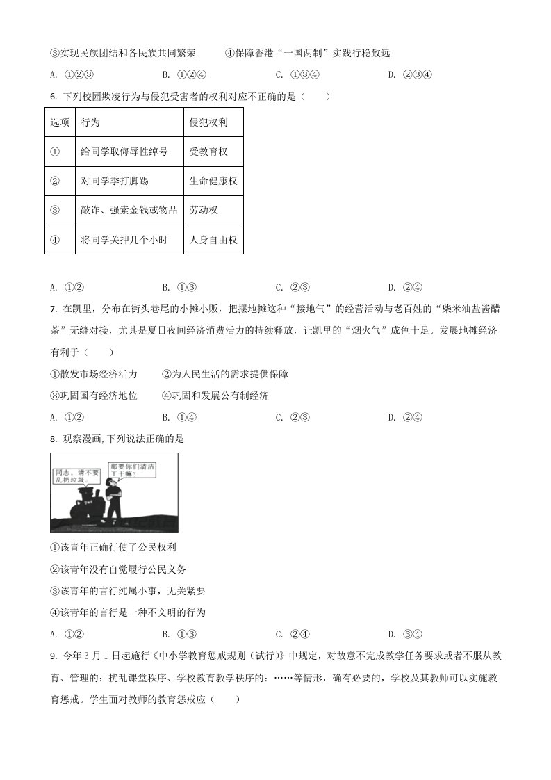 贵州省黔东南2021年中考道德与法治真题(空白卷)_共6页