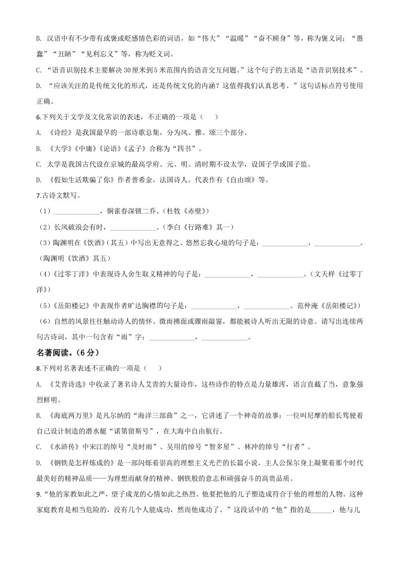 当前位置: 首页初中资源中考真题正文 黑龙江齐齐哈尔市、黑河市、大兴安岭地区2020年中考语文试题(空白卷)_共8页 中考真题 2 周前 0 0 5 以上为部分内容预览,如需源文档请登录您的会员账号进行下载! 声明:本站所有文章,如无特殊说明或标注,均为本站原创发布。任何个人或组织,在未征得本站同意时,禁止复制、盗用、采集、发布本站内容到任何网站、书籍等各类媒体平台。如若本站内容侵犯了原著者的合法权益,可联系我们进行处理。 尚学资源永久会员 打赏 收藏 海报 链接