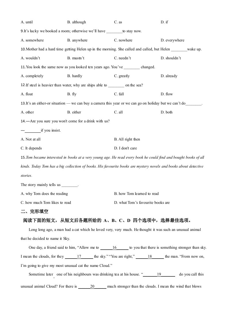 江苏省徐州市2020年中考英语试题(空白卷)_共12页