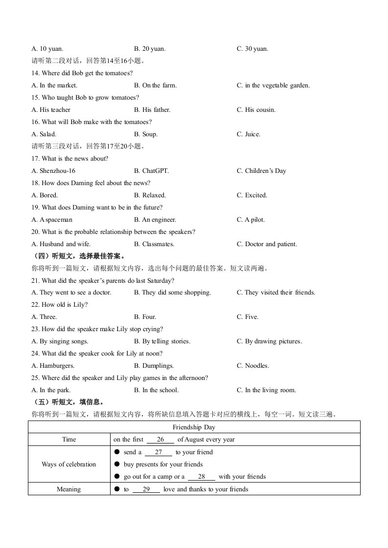 当前位置: 首页初中资源中考真题正文 2023年广西壮族自治区中考英语真题_共10页 中考真题 2 周前 0 0 5 以上为部分内容预览,如需源文档请登录您的会员账号进行下载! 声明:本站所有文章,如无特殊说明或标注,均为本站原创发布。任何个人或组织,在未征得本站同意时,禁止复制、盗用、采集、发布本站内容到任何网站、书籍等各类媒体平台。如若本站内容侵犯了原著者的合法权益,可联系我们进行处理。 尚学资源永久会员 打赏 收藏 海报 链接