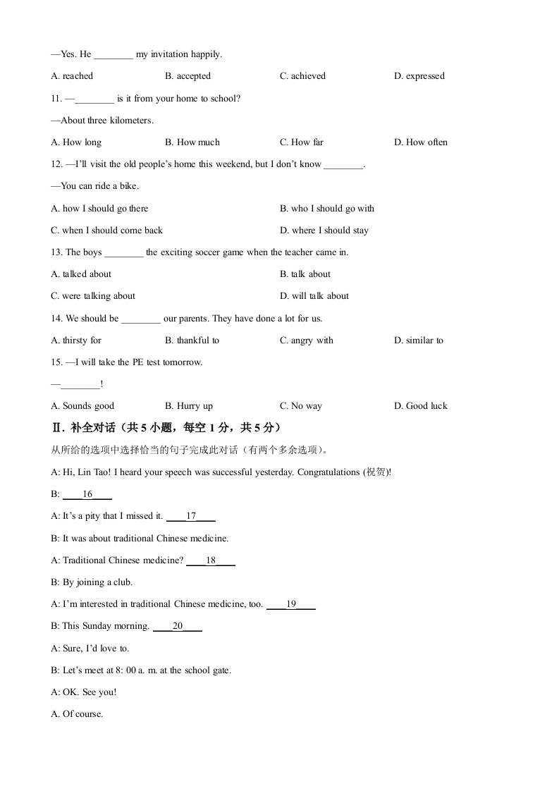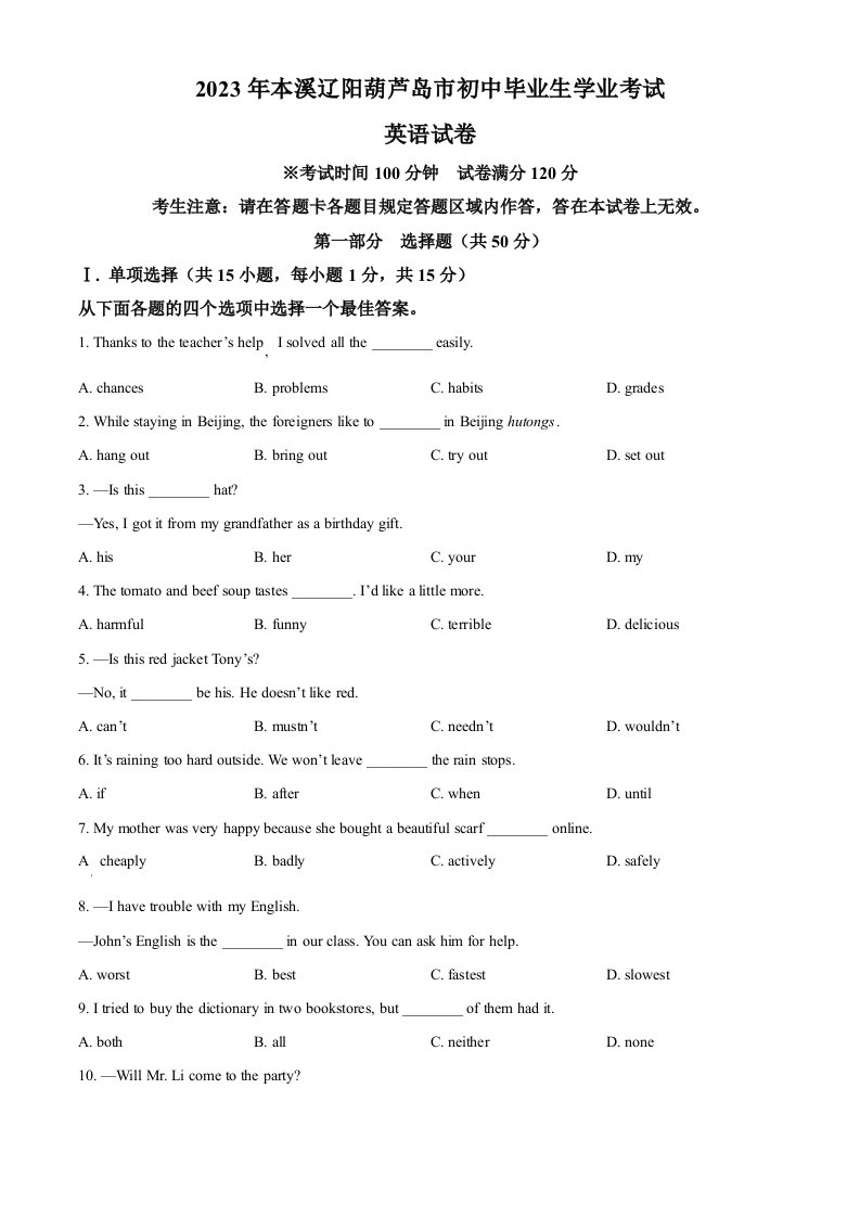2023年辽宁省本溪市、辽阳市、葫芦岛市中考英语真题(空白卷)_共15页