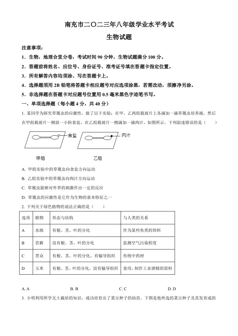 当前位置: 首页初中资源中考真题正文 2023年四川省南充市中考生物真题(空白卷)_共8页 中考真题 2 周前 0 0 5 以上为部分内容预览,如需源文档请登录您的会员账号进行下载! 声明:本站所有文章,如无特殊说明或标注,均为本站原创发布。任何个人或组织,在未征得本站同意时,禁止复制、盗用、采集、发布本站内容到任何网站、书籍等各类媒体平台。如若本站内容侵犯了原著者的合法权益,可联系我们进行处理。 尚学资源永久会员 打赏 收藏 海报 链接